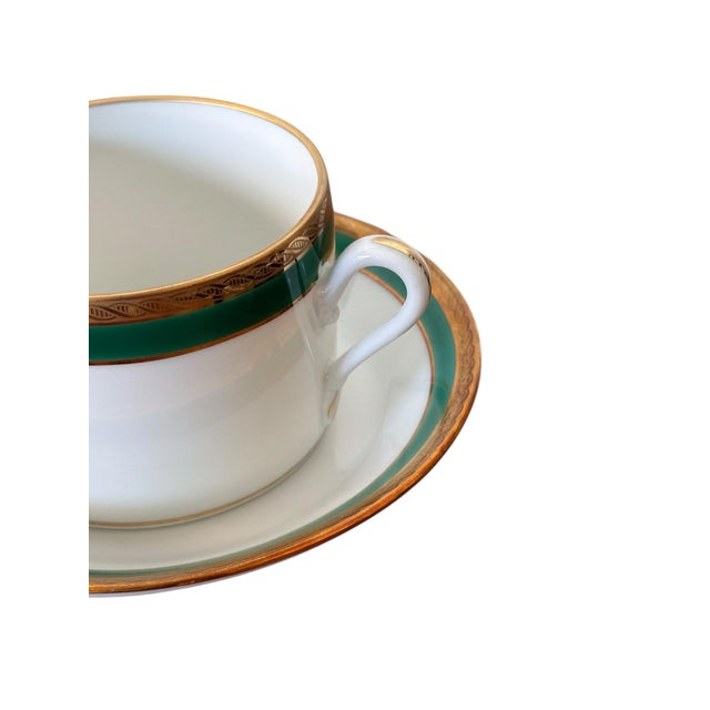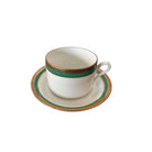 The Palermo Green pattern features a striking green hue accented by delicate gilded details, evoking a sense of understated luxury and classic European style. The clean, sophisticated lines of the cups and saucers make them perfect for both formal gatherings and everyday indulgence.