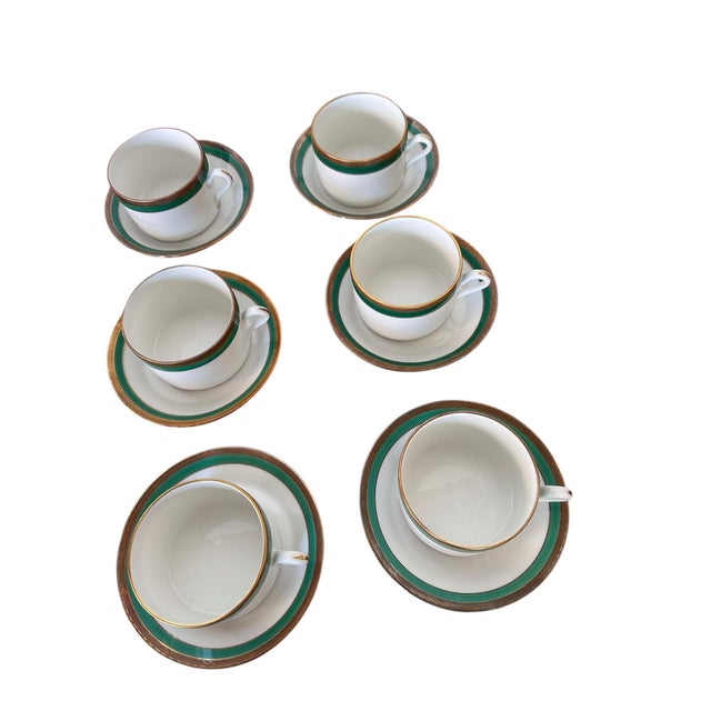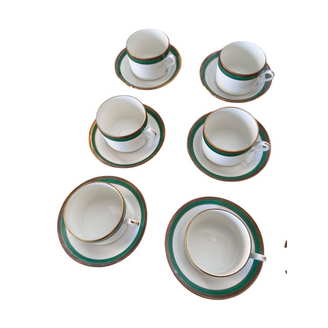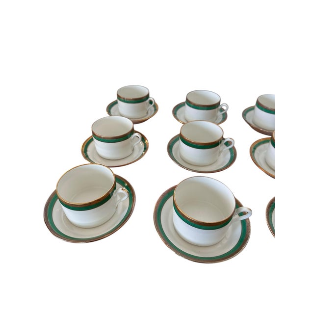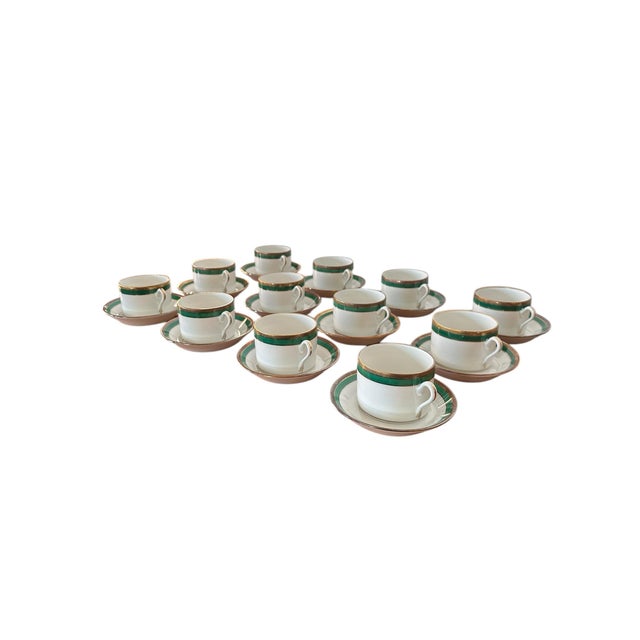 Late 20th Century Richard Ginori Palermo Green Cups and Saucers Set- 24 Pieces