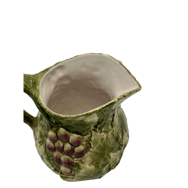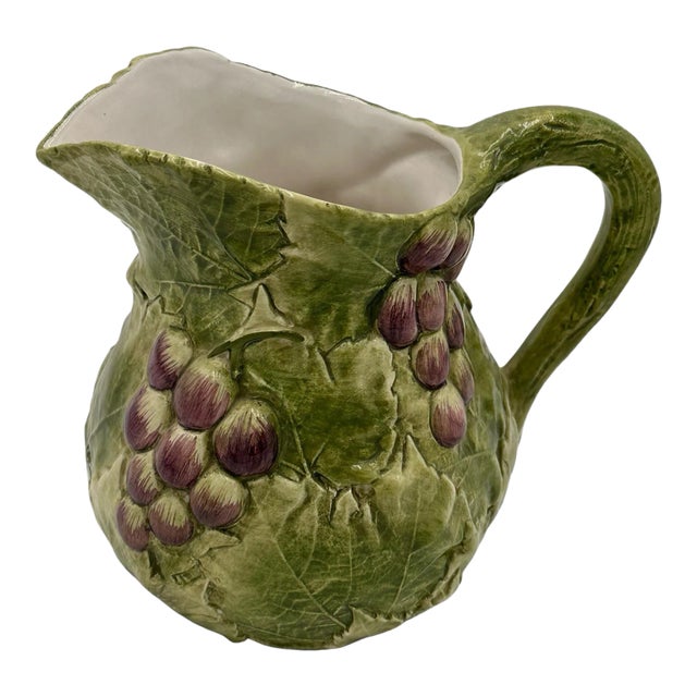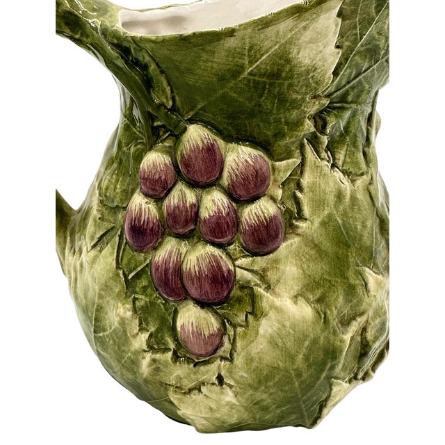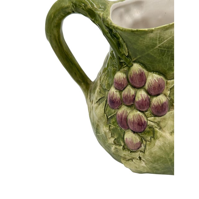 Late 20th Century San Marco Green and Purple Grape Relief Pitcher