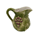 This San Marco grape relief pitcher captures the essence of classic Italian design. Featuring a richly detailed grapevine motif in shades of green, purple, and white, the piece exudes the charm of the Mediterranean countryside.