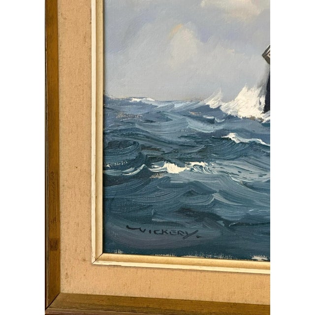 Charles Vickery was an American painter. He is best known for his naturalistic depictions of historic ships in the open ocean and crashing waves in all types of weather and times of day. He deeply loved the ocean and the paintings of Winslow Homer, saying of his subject matter, “All the colors of water come from the sky because every color of the sky is reflected in that water. And the sky has all the colors of the rainbow in it.” Born in 1913 in Hinsdale, IL, Vickery studied at the School of the Art Institute of Chicago. The artist died on September 22, 1998 in La Grange, IL.