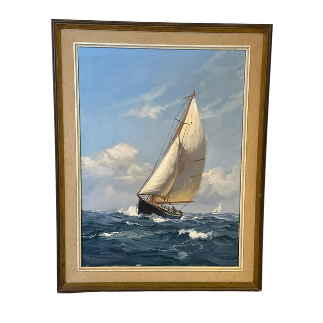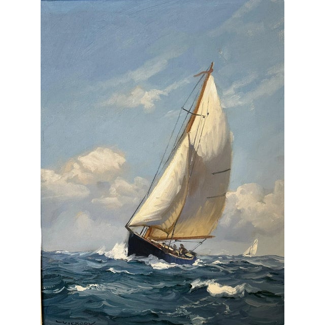 Late 20th Century Seascape Oil Painting "Sailboat on the Sea" by Charles Vickery, Framed