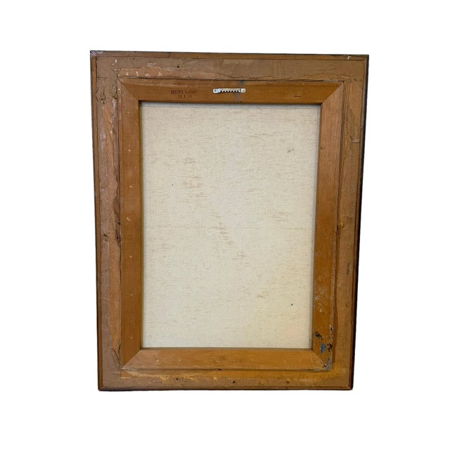A very minor amount of paint loss at the bottom of the canvas which does not take away from beauty. A few minor spots on linen. Please see photos.