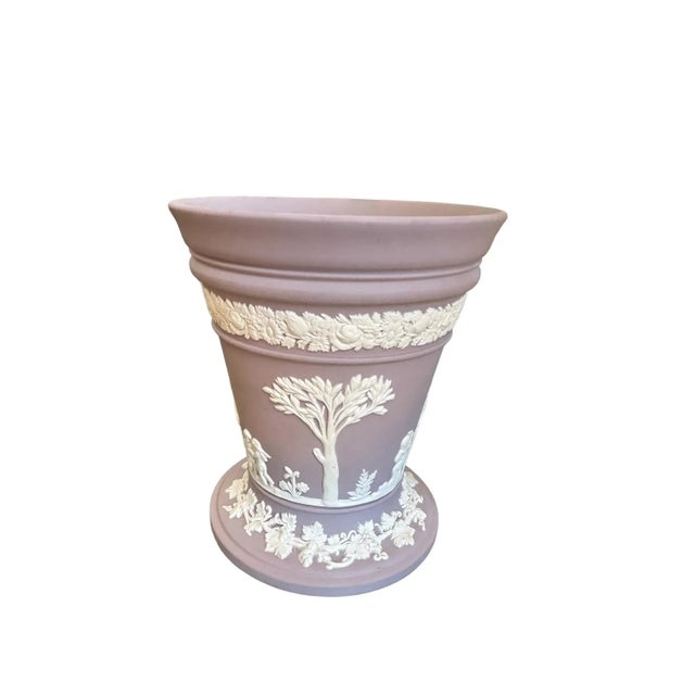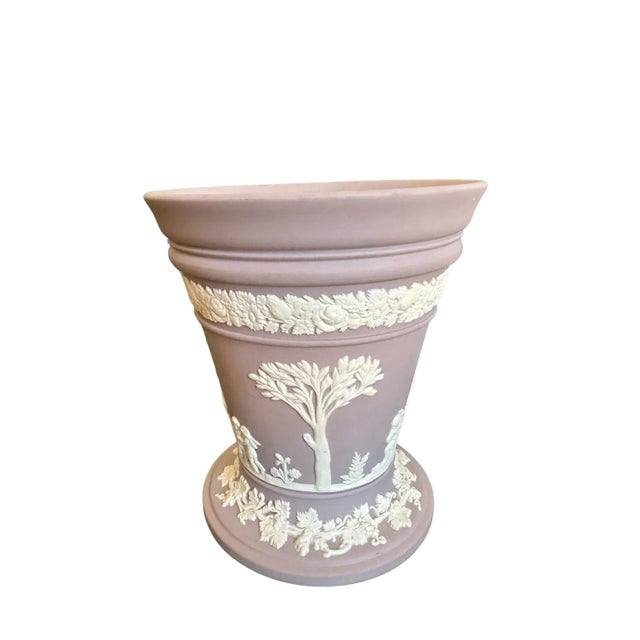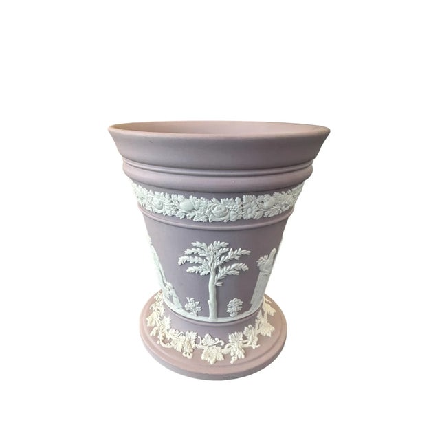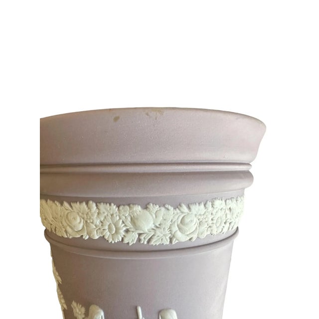 Late 20th Century Vintage Lilac Wedgwood Jasperware Vase With Sacrifice Figures and Cherubs