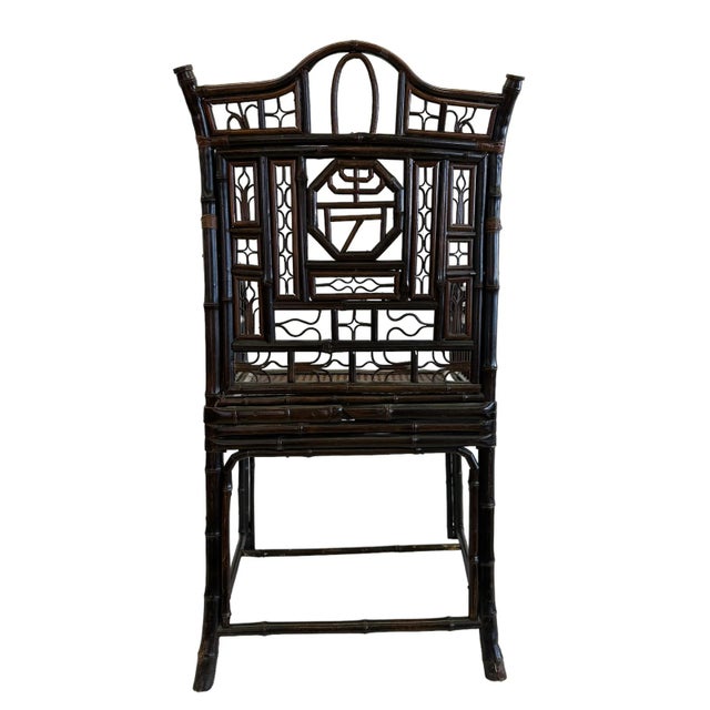Elegant diminutive pavilion bamboo side chair with a superb dark lacquered finished.