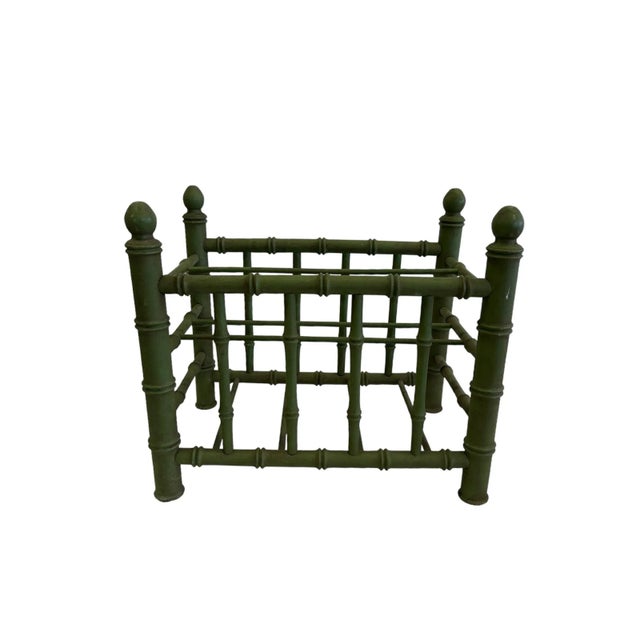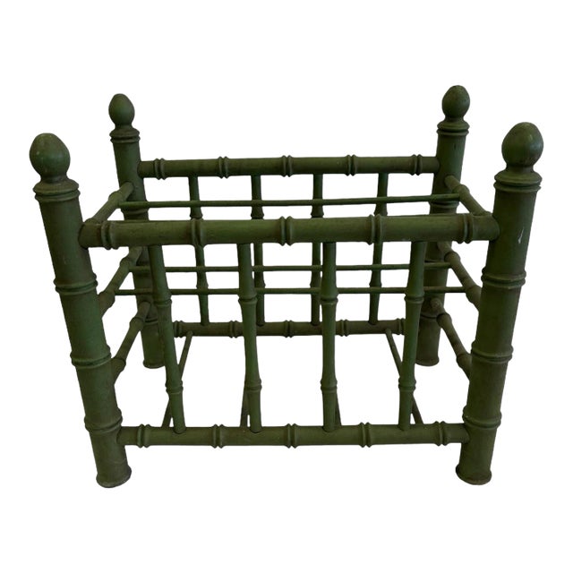 Elegant Hollywood Regency Style Faux Bamboo Canterbury Magazine in a spring green color.