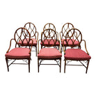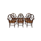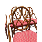This exquisite set of dining chairs is a wonderful example of the craftsmanship of McGuire and would make a statement in any kitchen or dining room. The natural wood is stained a lovely red, brown hue and the wood is wrapped in placed with rattan.