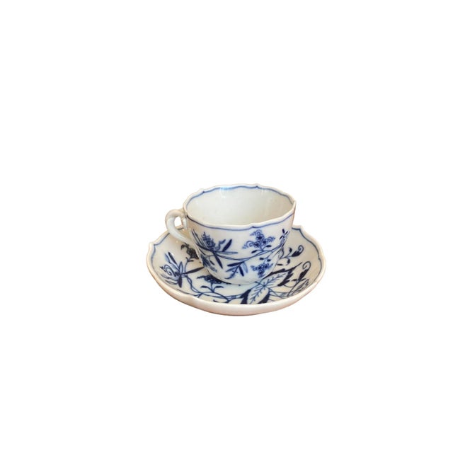 Mid 20th Century Vintage Meissen Blue Onion Espresso Cup and Saucer
