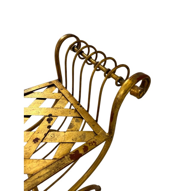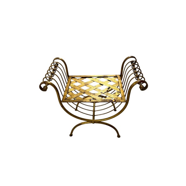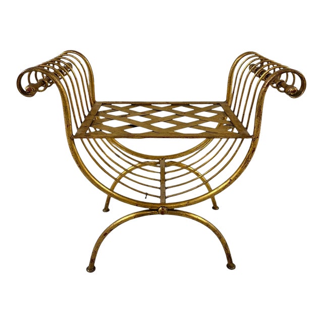 Mid-Century Hollywood Regency Gold Foil Gilt Curule Bench