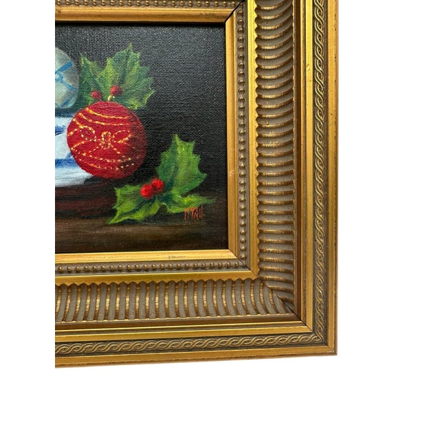 Original Christopher McCall Blue and White Holiday Oil Painting in Gilded Frame