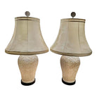 These exquisite lamps would make a beautiful addition to more traditional or neutral rooms and could serve as stately anchors to either end of a mantel, sideboard or nightstands. House-ready.
