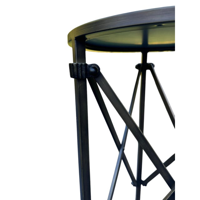 A stylish update on the classic French gueridon, this mirrored side table is just the right size for parking a drink beside your favorite chair. Its beveled mirror top is supported by three metal legs strengthened with "X" stretchers.