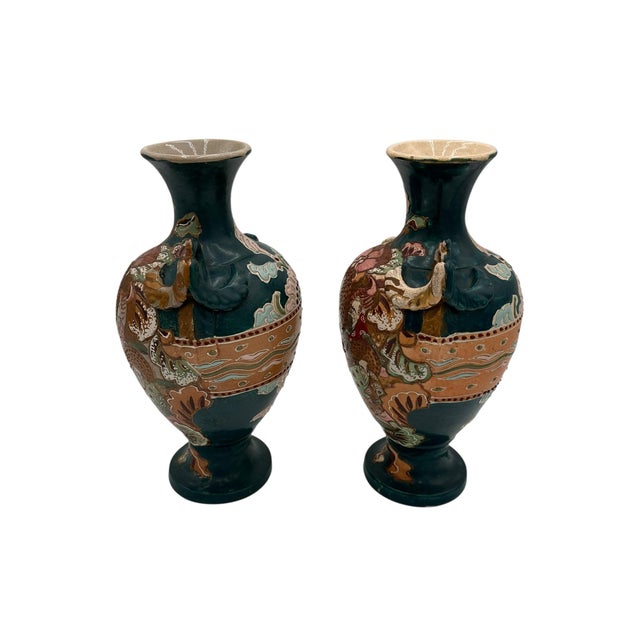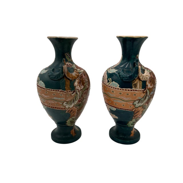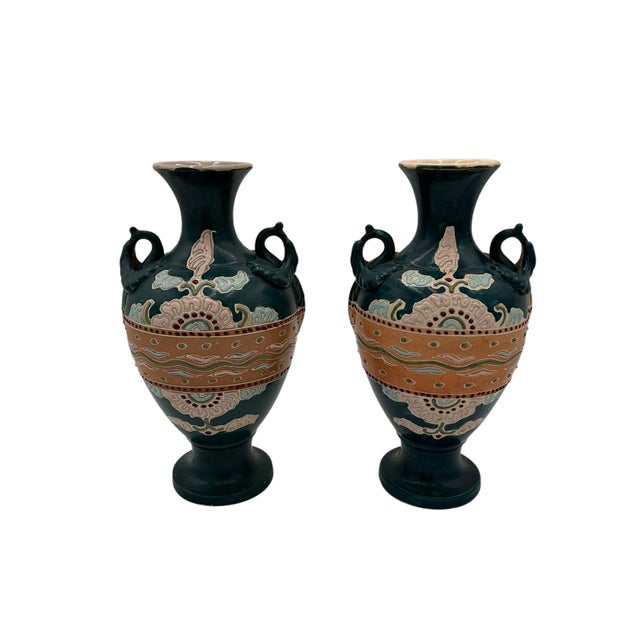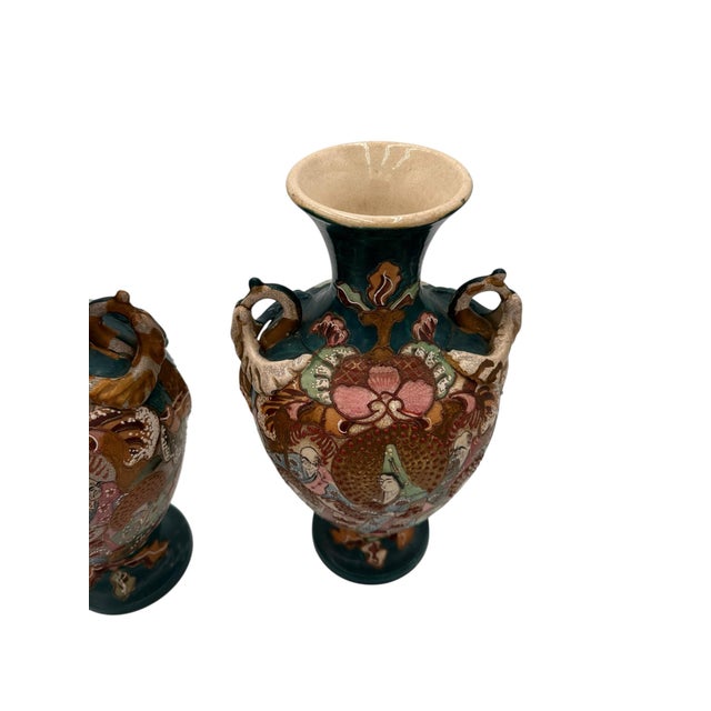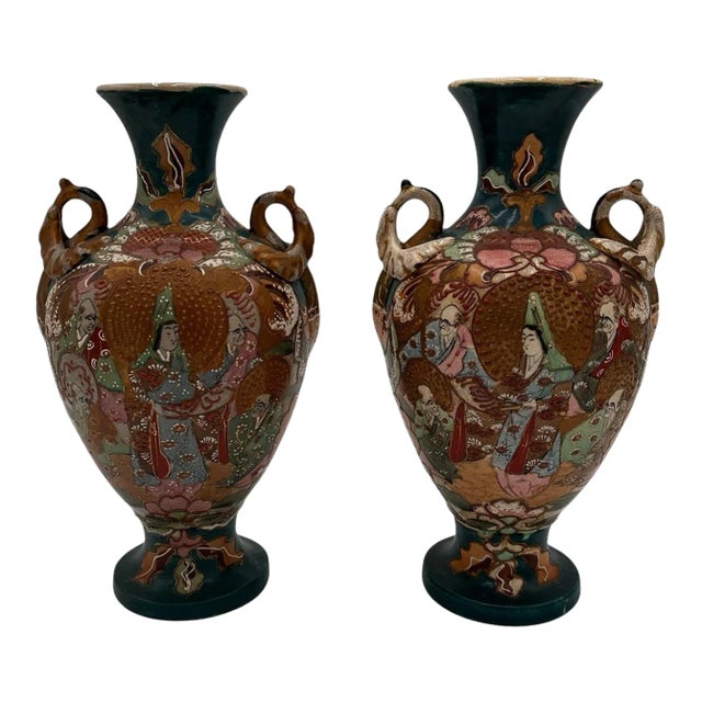 Pair of Early 20th Century Japanese Hand-Painted Satsuma Vases