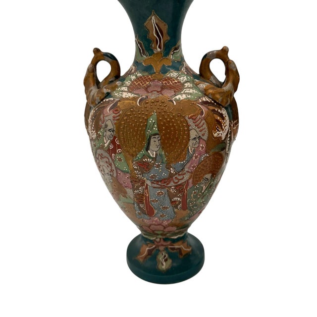 A stunning pair of early 20th-century Satsuma vases, exquisitely hand-painted with intricate detail and vibrant colors. Each vase showcases traditional Japanese motifs, including florals, landscapes, and figural scenes, all rendered with remarkable precision. The creamy crackle glaze, characteristic of Satsuma pottery, enhances the delicate artwork while adding a touch of timeless elegance.