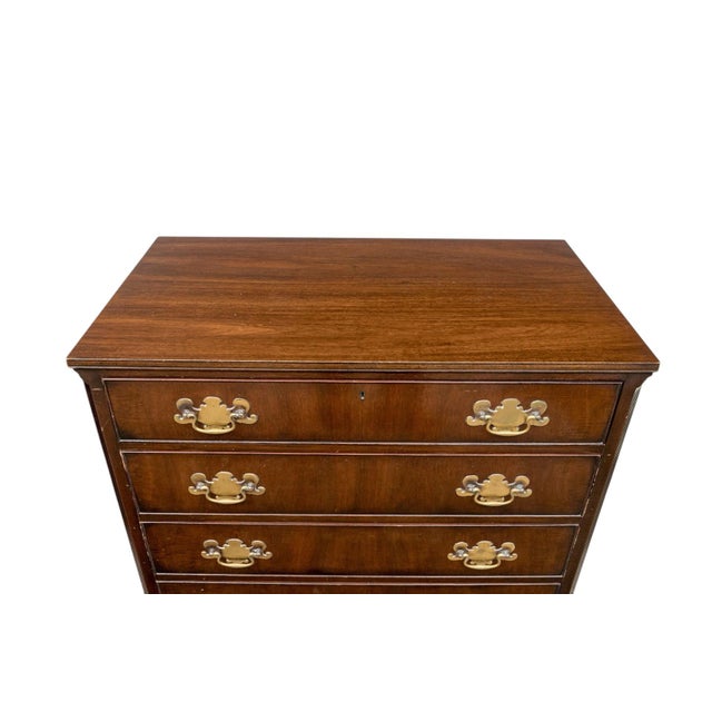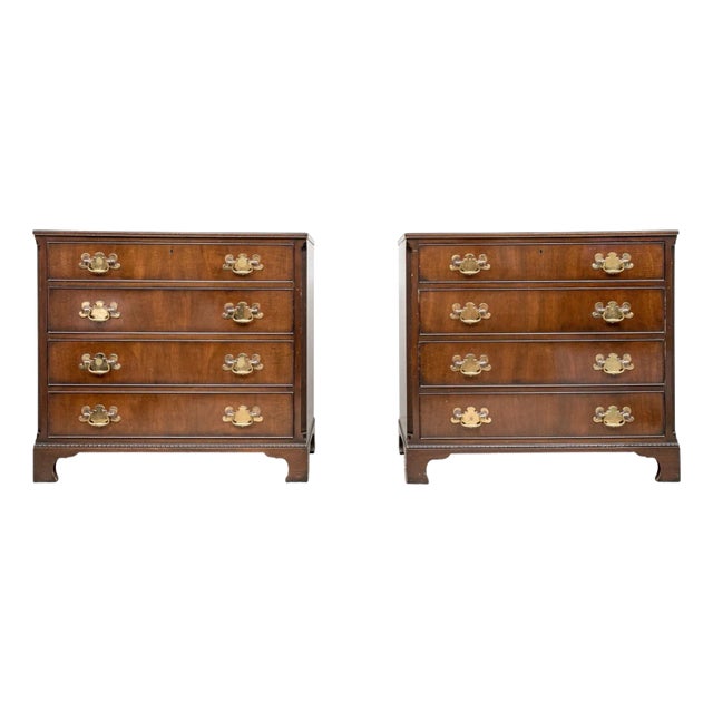 Impressive Pair of Kittinger George III Style Mahogany Four Drawer Bachelors Chests With Brass Hardware