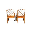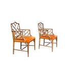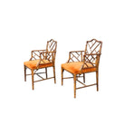 Impressive Pair of Chippendale Faux Bamboo Arm Chairs With Persimmon Velvet Upholstery