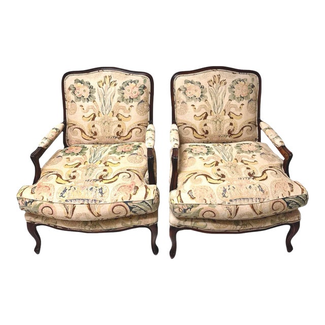 Pair of Late 20th Century Louis XV Linen Bergère Chairs Upholstered by Jon Paul Shriever