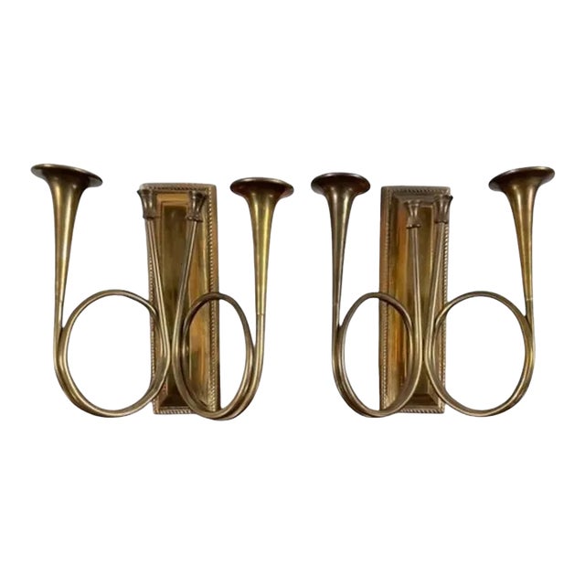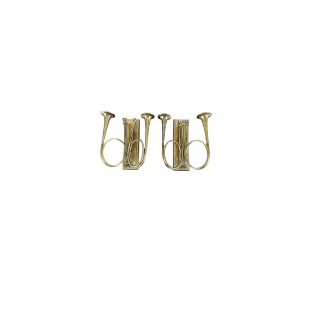 Pair of Mid 20th Century Brass Horn Candle Sconces