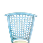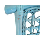 This quaint pair of wicker chairs is painted a vibrant sky blue, perfect for adding a pop of color into any space. The wicker and rattan backing complements coastal and boho chic styled interiors, while the vinyl seat is a neutral white that makes the piece versatile in a number of settings.