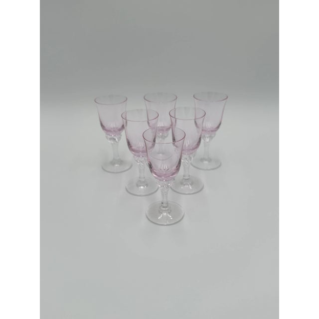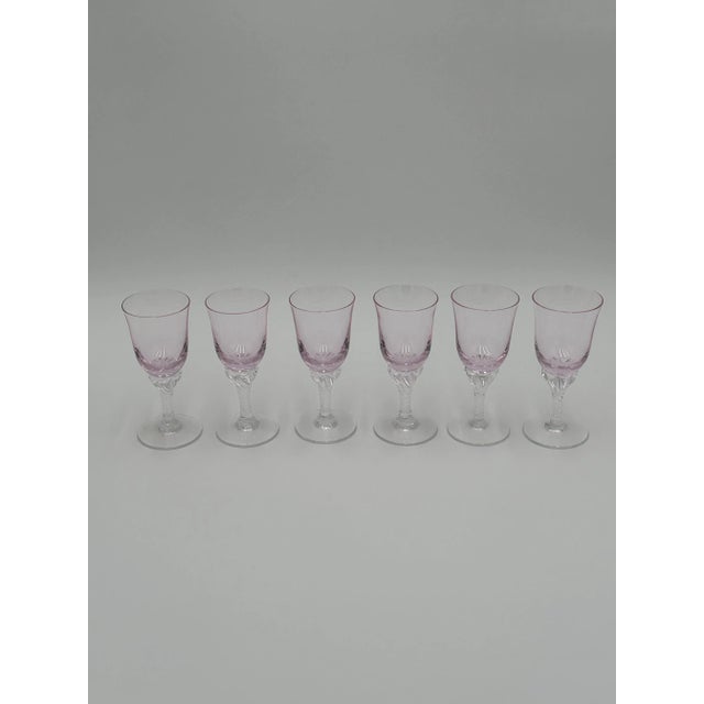 Rare set of 6 Sasaki crystal cordial glasses in the Coronation pattern in the color light pink.