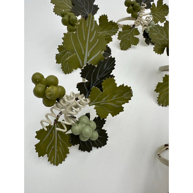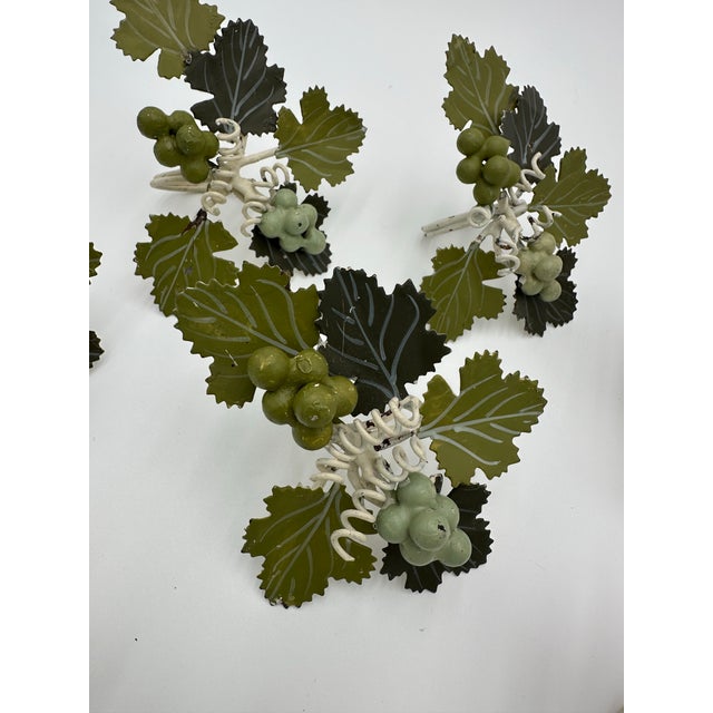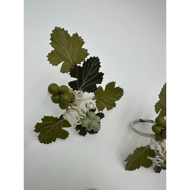 Set of 8 Hand Painted Vintage Tole Grape Vine Napkin Rings