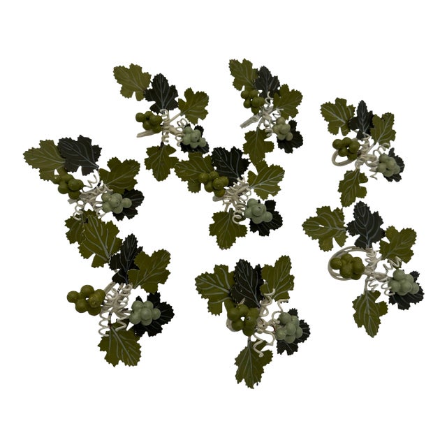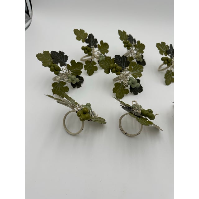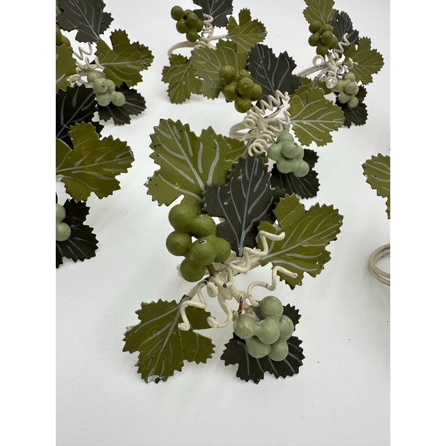 Set of 8 Hand-Painted Vintage Tole Grape Vine Napkin Rings