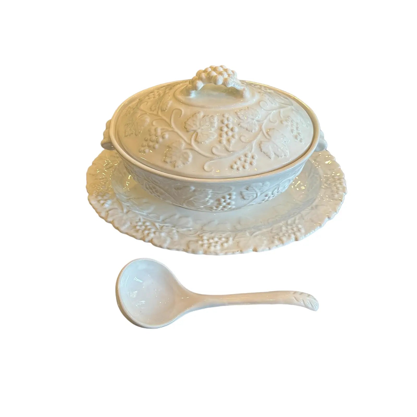 Vintage Grazia Deruto White Soup Tureen With Platter and Spoon