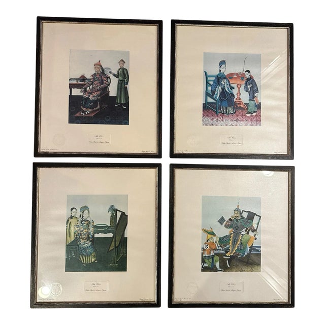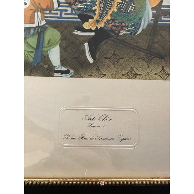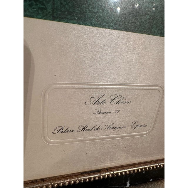 This exquisite set of vintage 1970’s Chinese lithograph reproductions are a captivating set from a Spanish collection of the Palacio Real de Aranjuez. The series is an official reproduction of etchings gifted by the Chinese Emperor to Queen Isabella II of Spain in 1853. These official reproductions are number 3-6 in that series.
