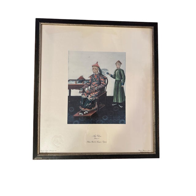 Vintage 1970s Chinese Lithograph Reproduction Prints - a Gift to Queen Isabella (1853) by the Chinese Emperor With Official Spanish Blind Stamp