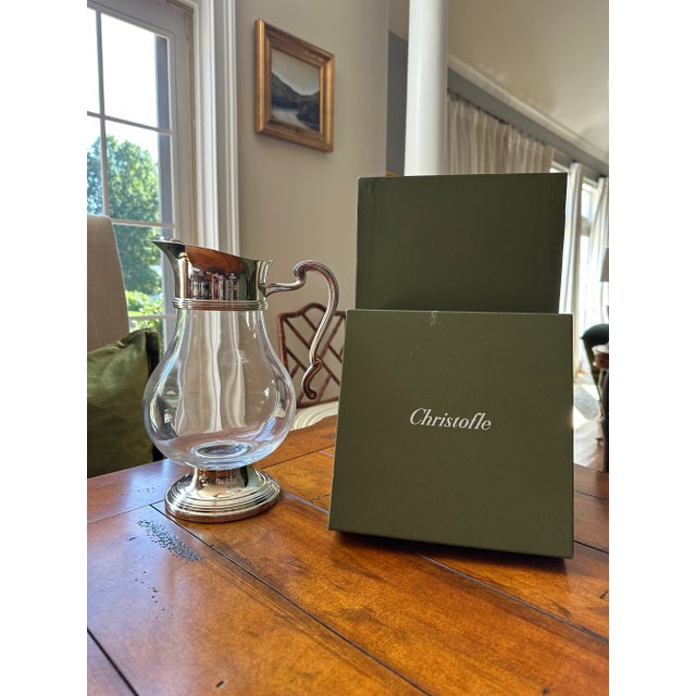 This elegant vintage Christofle crystal and silver plate pitcher is 1 of 2 in our store.