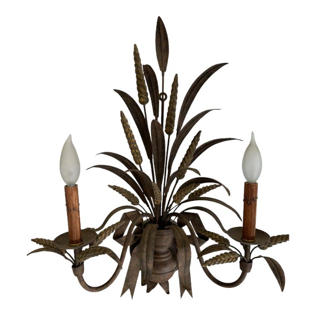 Vintage Currey and Company Wheat Motif Sconce - Bronze Finish