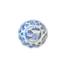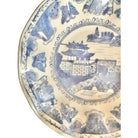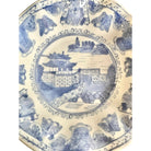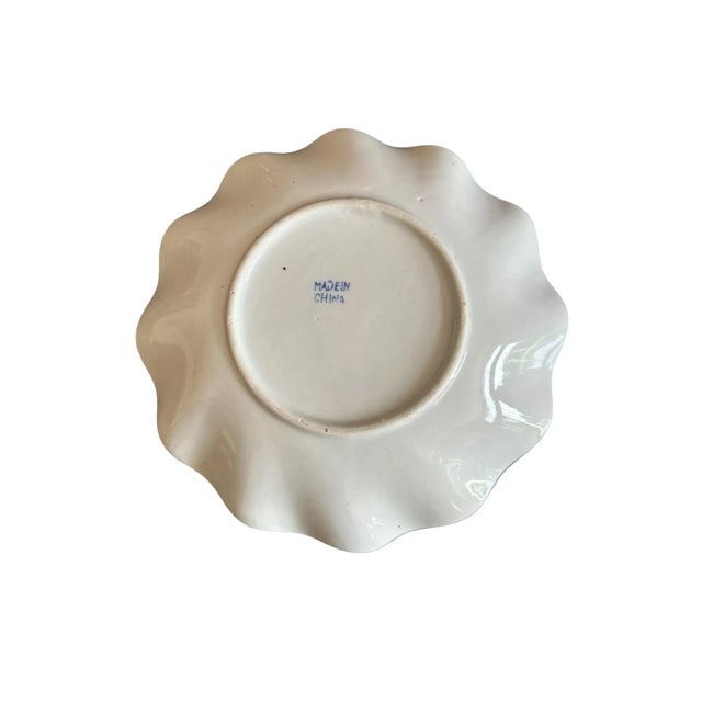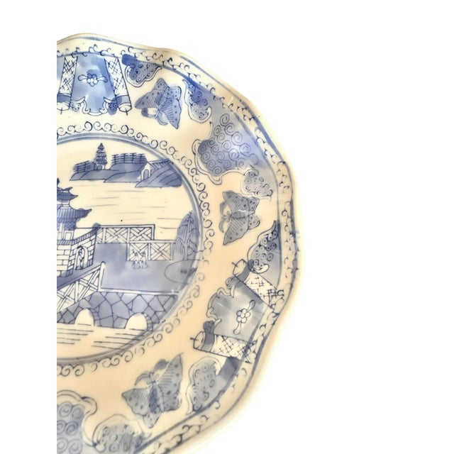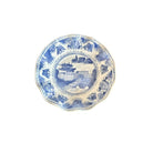 Vintage Hand-Painted Blue and White Chinoiserie Ruffle Bowl With Island Pagoda Scene.