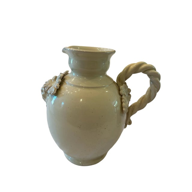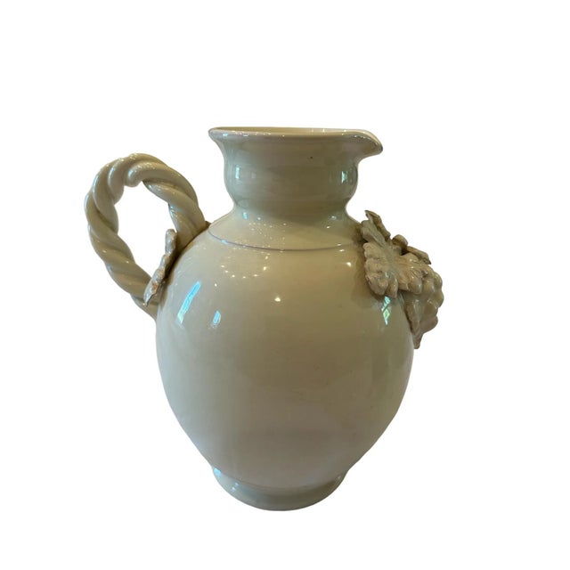 Beautiful cream colored water pitcher with a raised Italian grape design.