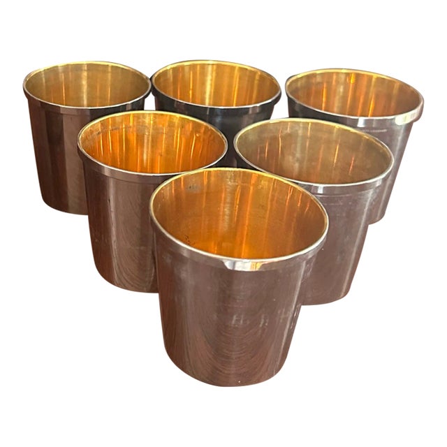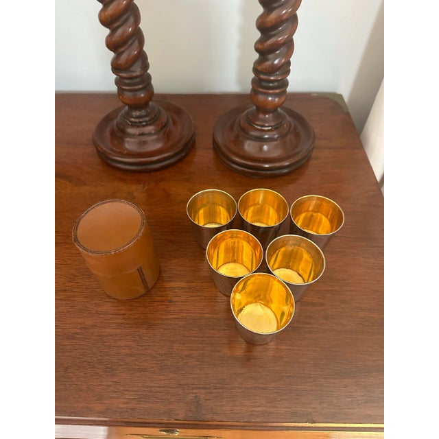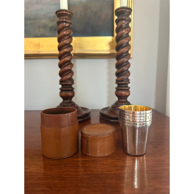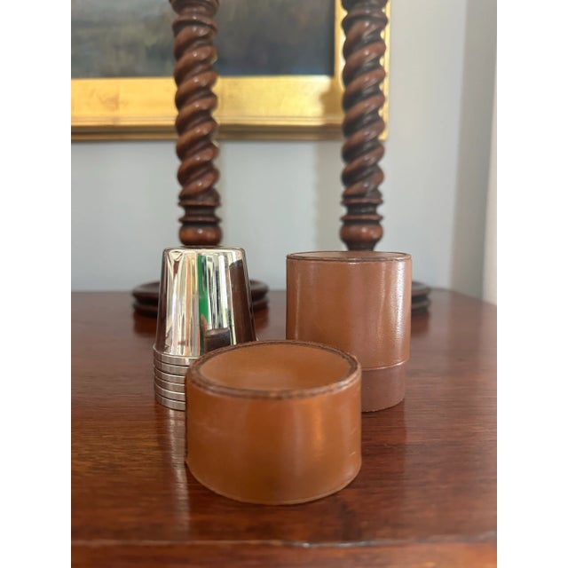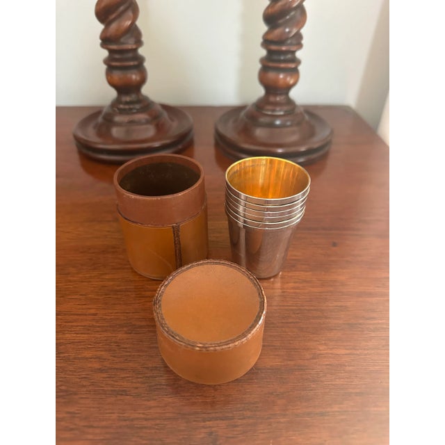Vintage Leather and Silver Plate Nesting Travel Cups With Leather Case - 6 Cups