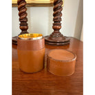 The perfect travel accessory for an elegant drinks on the go, this set features a saddle leather travel case and 6 silver plate cups. A perfect gift for travelers and lovers of beautiful bar accessories. House-ready.