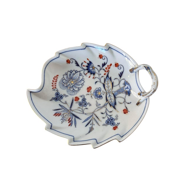 Vintage Meissen Onion Pattern Leaf-Shaped Dish