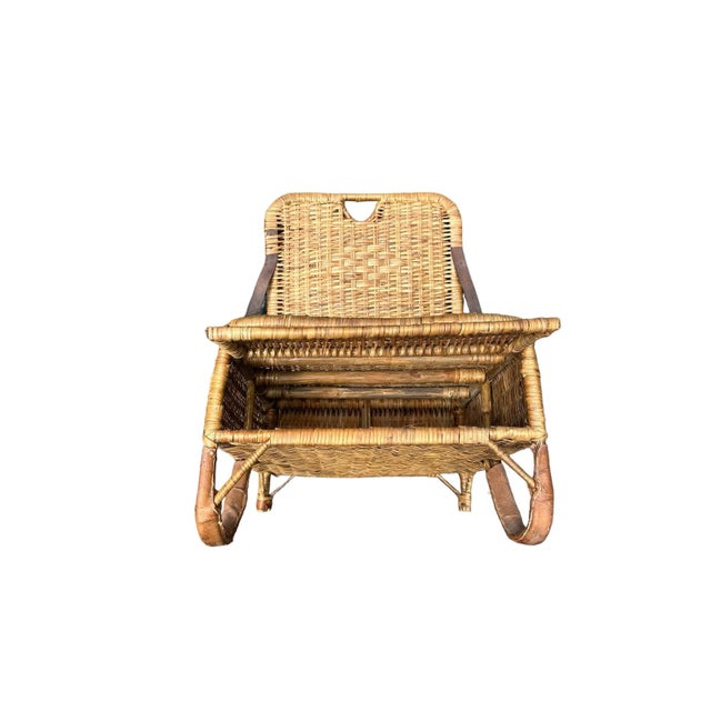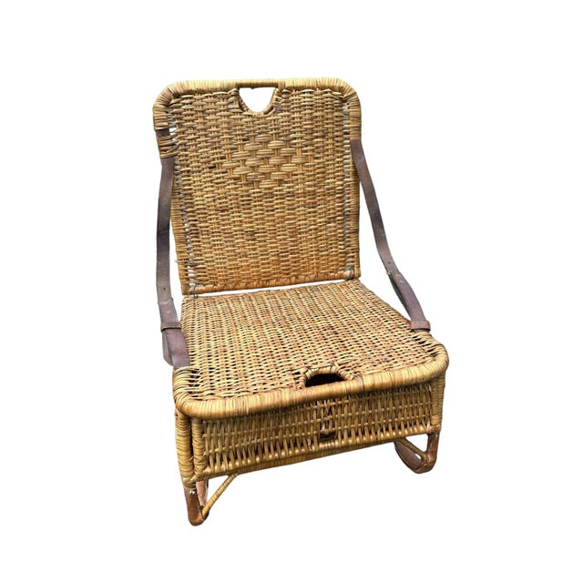 Vintage Picnic Wicker and Leather Chair Fisherman’s Folding Seat