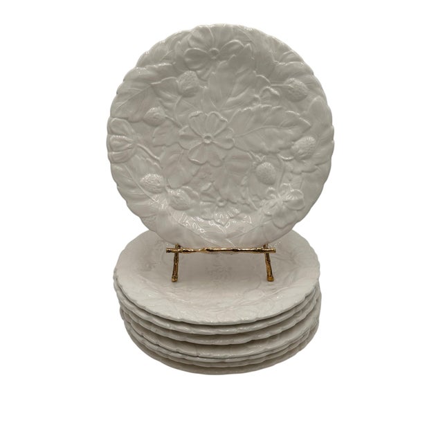 Vintage PV-France (Peasant Village) Majolica Blooming Strawberries in Pattern 15981 Plates and Serving Platter Set- 17 Pieces