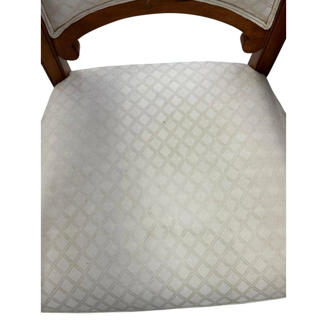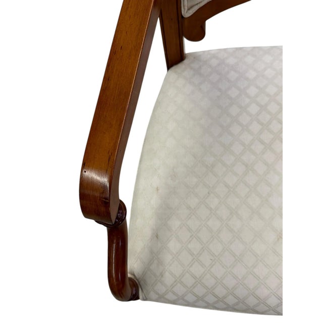 Chair in excellent condition. A few small marks on upholstery, does not take away from beauty or function. We want our customers to have complete satisfaction with their purchases. We endeavor to note any wear and tear to our pieces, but we encourage you to carefully and thoroughly review all photos. We consider product photos a part of our condition report and kindly request that you to inspect them carefully before your purchase.