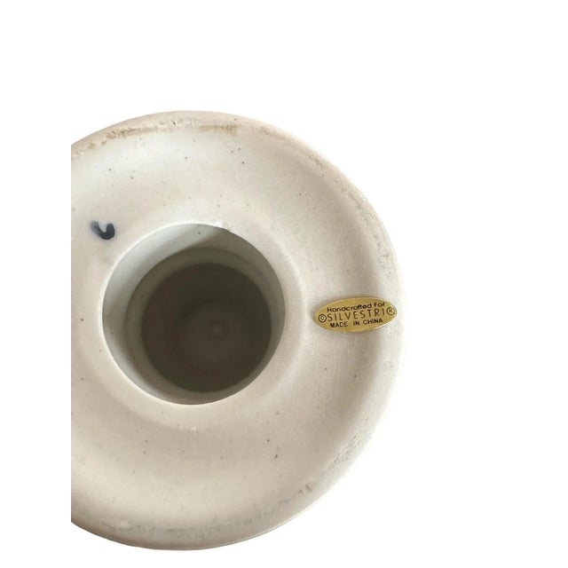 Vintage Silvestri Blue and White Ceramic Candlestick Holders- Set of 3